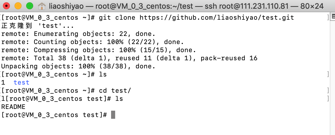 复制如上图地址,使用“git clone”命令进行克隆,可以查看到README文件。