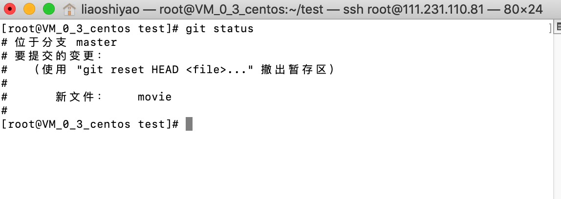 步骤二:把刚刚新增的文件建立追踪,使用命令:“git add movie”