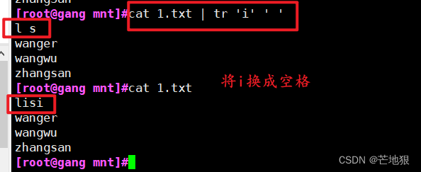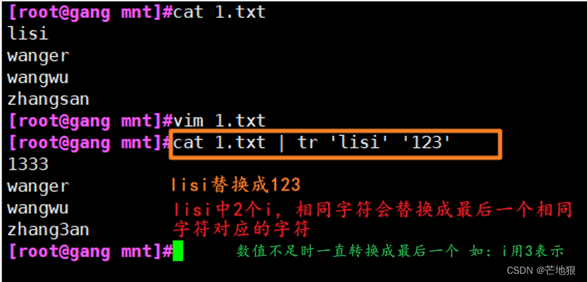 ②当转换数值不足时,一直转换成最后一个 tr 'lisi' '123'