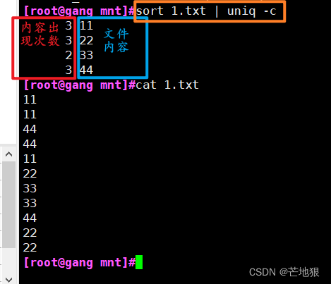 | -c | 统计重复的行(在它前面标上重复的次数) |