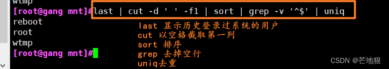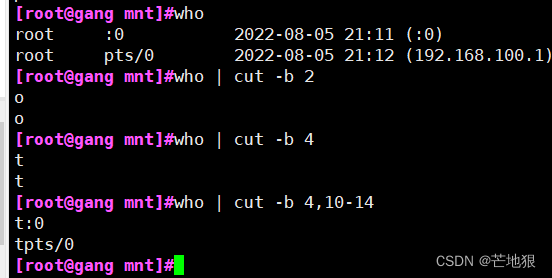cut命令从文件的每一行剪切字节、字符和字段并将这些字节、字符和字段写至标准输出。