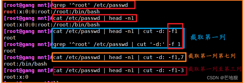 可以按照字符(-c)按照字节(-b)或者根据分割符(-d)来选取要截取的列(-f)