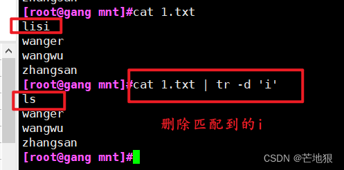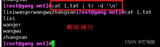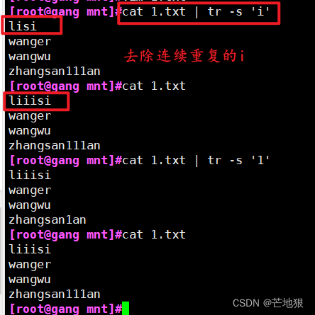 还可以进行去重(-s),但是去重的字符必须是连续在一起的两个字符(会保留其中一个),不然无法去重成功。