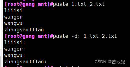 | -t | 指定分隔符,默认使用 [Tab] 键或空格分隔 |