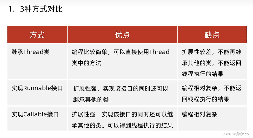 - 缺点:线程类已经继承Thread,无法继承其他类,不利于扩展