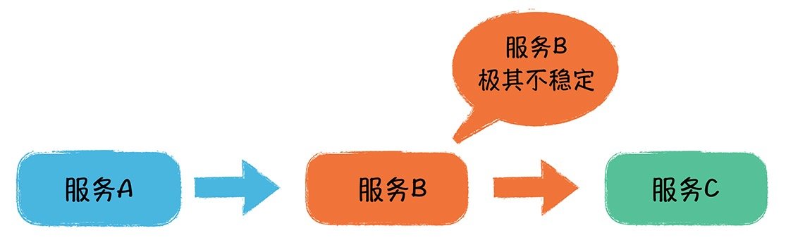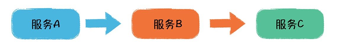 在实际产品开发过程中,某个服务或前端依赖一个服务接口,该接口可能依赖多个底层服务或模块,或第三方接口,比如说服务 A 依赖服务B,服务B又依赖服务 C,如下图所示: