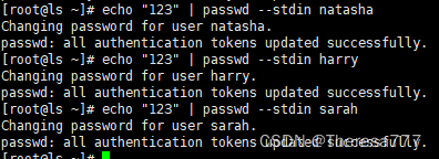 5.设置natasha 、 harry 和 sarah 的密码都是 123