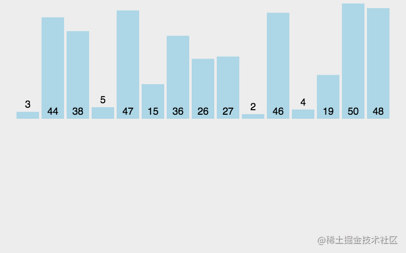 function shellSort(arr){for(let gap = Math.floor(arr.length/2); gap > 0; gap = Math.floor(gap/2)){for(let i = gap; i < arr.length; i++){let j = i;const x = arr[j]; // 缓存数字,空出位置while(j - gap >= 0 && x < arr[j-gap]){arr[j] = arr[j - gap]; // 将符合条件的数字,填入空出的位置j = j - gap;}arr[j] = x; // 最后,将缓存的数字,填入空出的位置}}return arr;