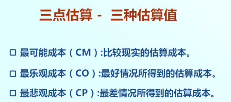 这三种估算值分别是:最可能成本,最乐观成本,最悲观成本。