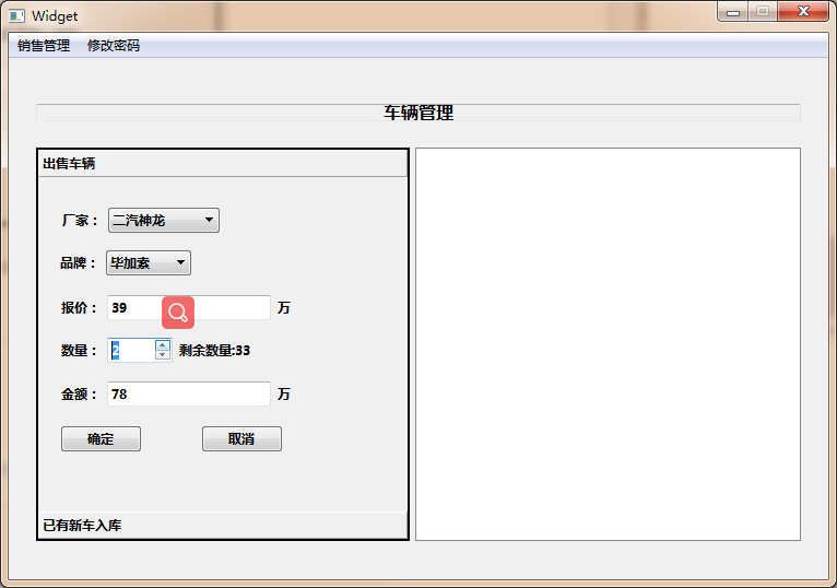 if(arg1==0){//如果数量为0,则清空相关控件的值,锁定相应的功能ui->sellSumLineEdit->clear();ui->sellSumLineEdit->setEnabled(false);ui->sellOkBtn->setEnabled(false);}else {//如果数量不是0,解锁相应功能,并将数据显示到显影控件上ui->sellSumLineEdit->setEnabled(true);ui->sellSumLineEdit->setReadOnly(true);qreal sum = arg1*ui->sellPriceLineEdit->text().toInt();ui->sellSumLineEdit->setText(QString::number(sum));ui->sellOkBtn->setEnabled(true);}