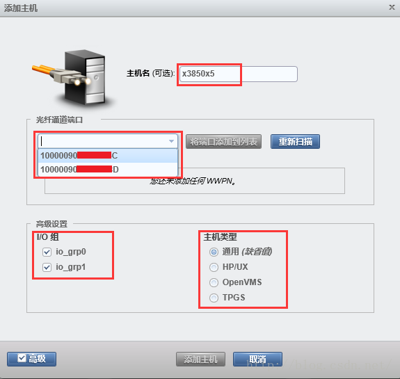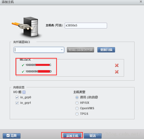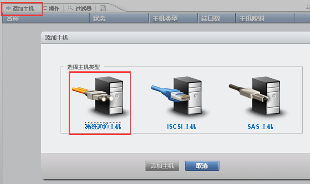 首先添加配置主机,前提是已经连接好光纤线,配置好光纤交换机