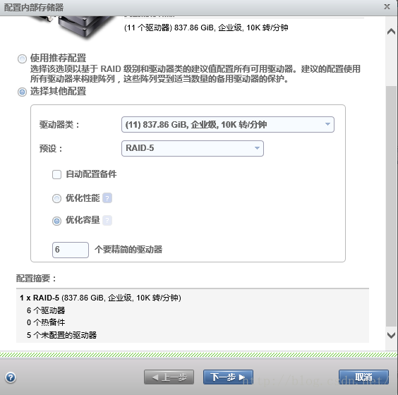 这里我们采用5+1,4+1各一组,配合一块热备件。也是系统的推荐配置。