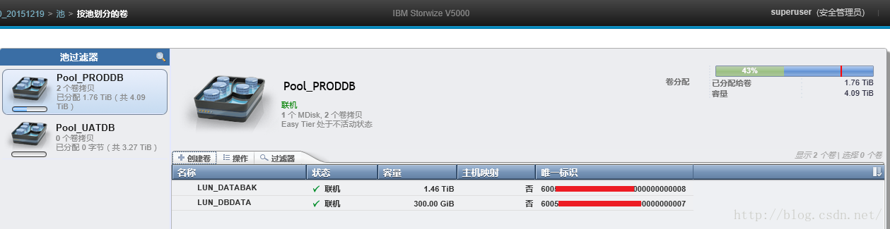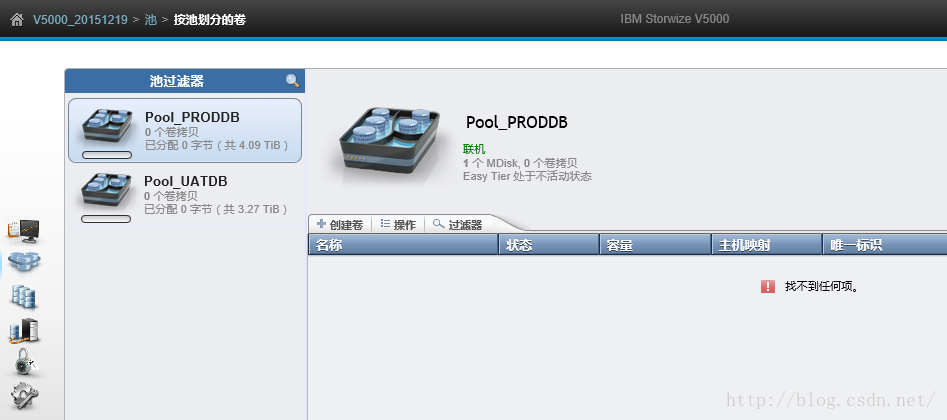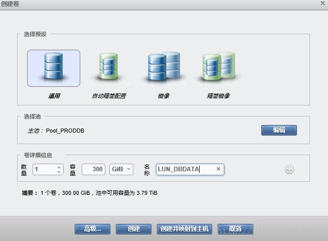 在池上创建卷,生产目前只需要先划2个卷300G+1500G