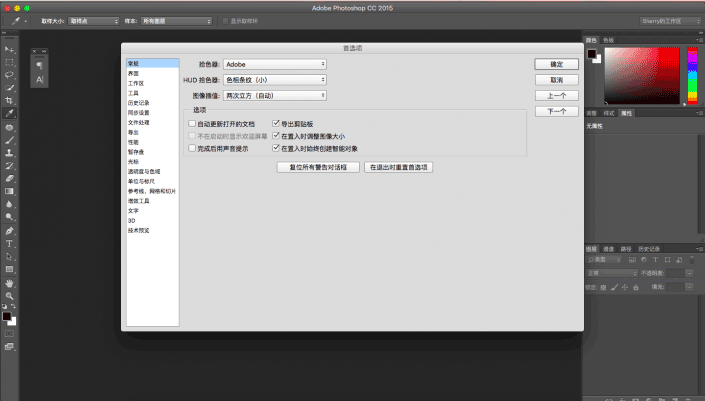 ①打开常规面板(也可以在菜单栏里打开,windows电脑在“文件菜单”下点击“常规”快捷键ctrl+k)