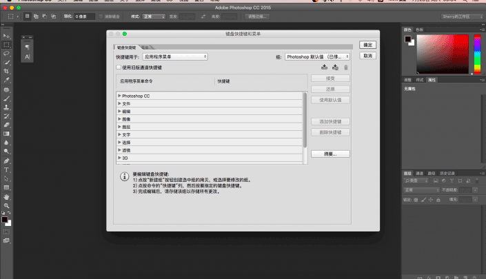 ps中所有的快捷键都可以在此修改,可以点开一一查看,修改为自己方便使用的快捷键