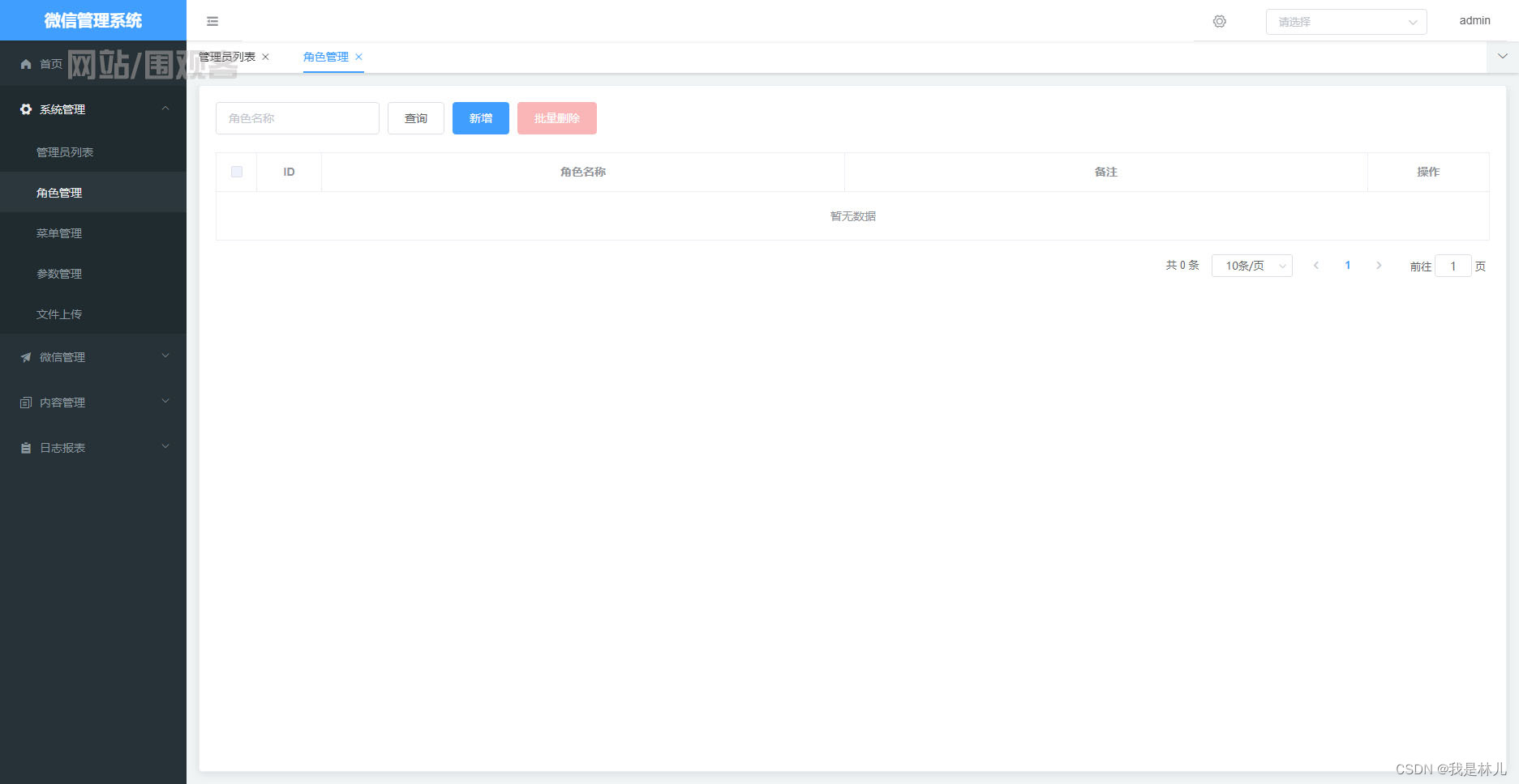 角色管理(ID,角色名称,备注,操作)