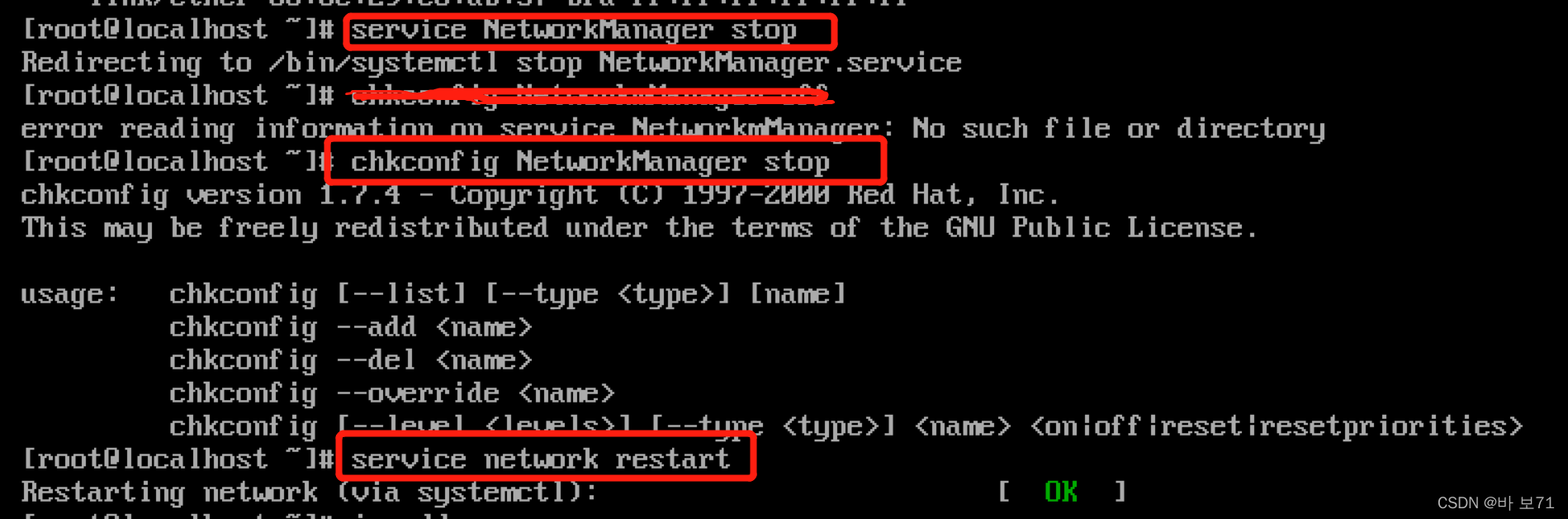 chkconfig NetworkManager off 永久关闭 Manager网卡