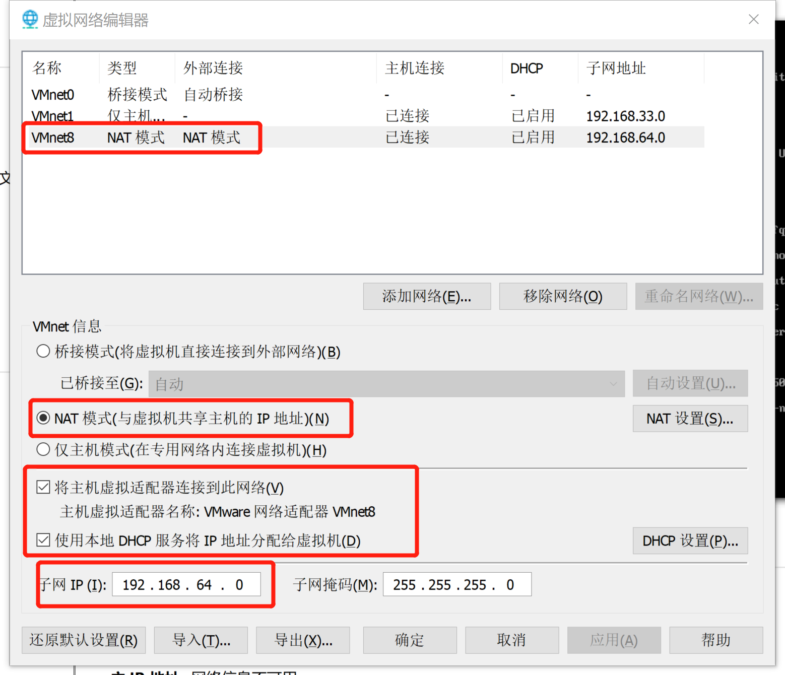 设置VMware的NAT模式的网络网段
