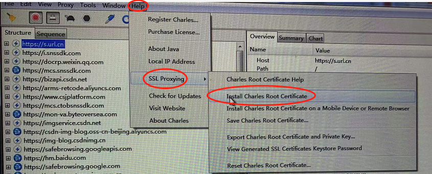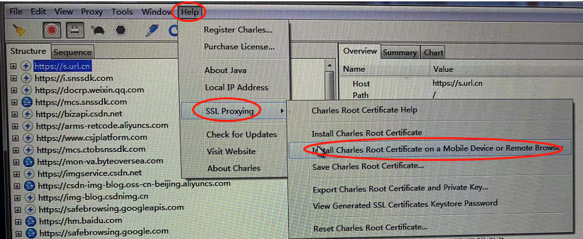 2) 手机浏览器输入网址:http://charlesproxy.com/getssl 或则 chls.pro/ssl,即可下载完后自动安装证书到手机端,若证书安装失败可往下看第二大点的 “问题三”。
