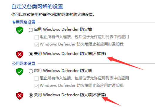 2、若还是失败,确认一下电脑的防火墙是否是关闭状态(所有的防火墙都需要关闭)