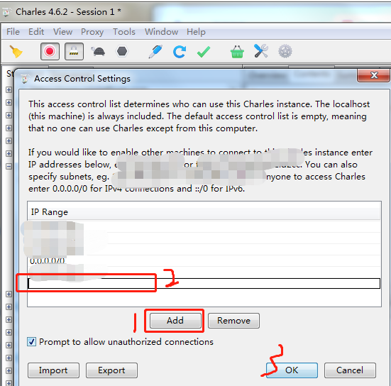 1.添加代理ip范围,在此可把0.0.0.0/0添加进去,也可添加自己手机的IP地址,按以下图片步骤把手机ip地址添加进去