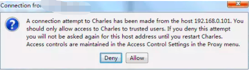 最后,打开手机任意需要网络的程序,电脑端Charles就会出现一个手机端请求连接的确认弹窗,点击允许(allow)即配对成功,现在开始可以用手机抓包了哦~(其实我电脑配对成功了,但并没弹这个窗口)。