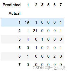 pred[:5]pd.crosstab(y_test, pred, rownames=['Actual'], colnames=['Predicted'])