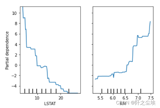 plot_partial_dependence(model, X_train, ['LSTAT', 'RM'])