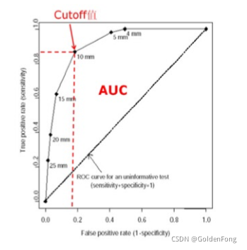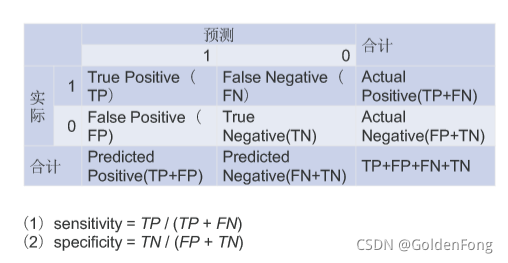 (3)基于不同的阈值设置,产生一系列不同的混淆矩阵和相应的sensitivity、specificity组合