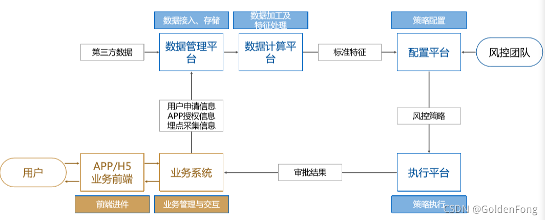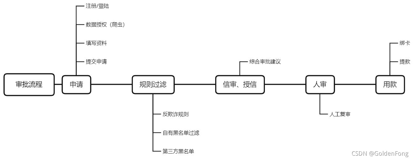 个人-注册&申请-商品分期/现金贷-提交个人资料-审核&授信(信用评估数据)-支付/体现-贷后管理(风险预警数据)