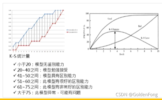 (4)每个区间上好、坏客户累计占比的差值形成K-S曲线