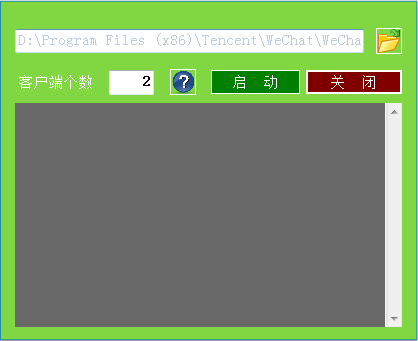 设置微信路径,开启客户端个数,点击【开启】就行了,程序自动关闭。