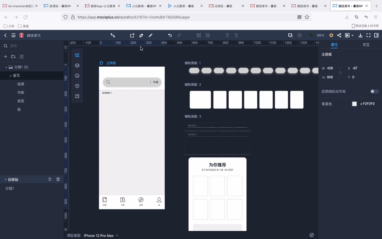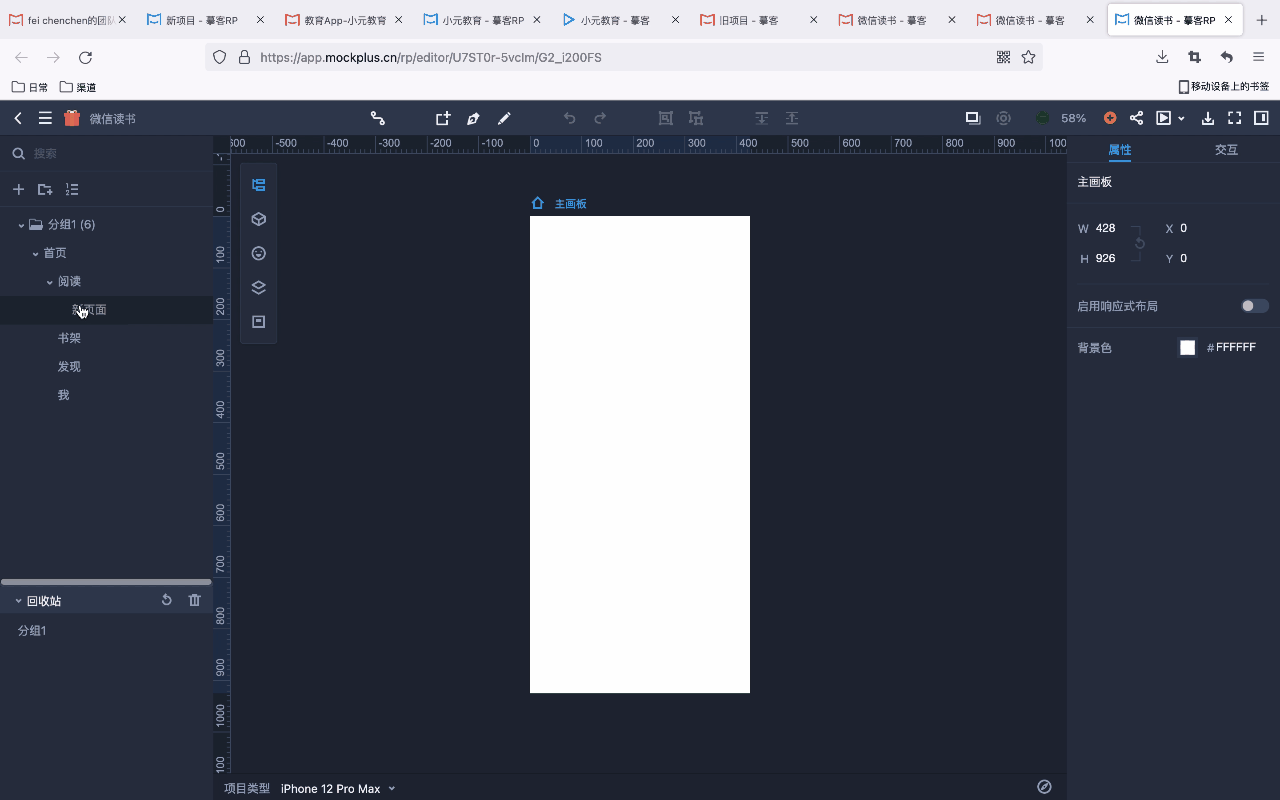 如上图我们可以看到,在摹客里,常见的手机、平板、Web的尺寸都已经被预设好了,另外还有个自定义尺寸,用来满足一些非常规需求。比如:像咱们公司的测试小姐姐一样,用来做汇报TTP呗,我瞅着还挺溜的~😏