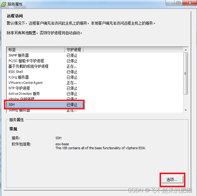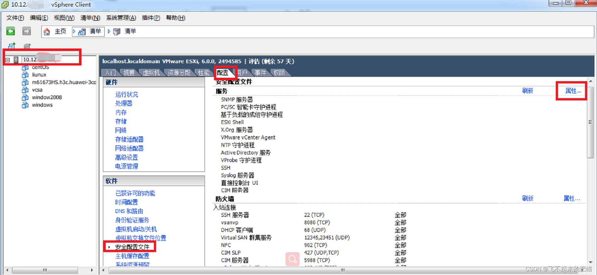 一、使用vmware vSphere client工具登录到esxi主机, 依次点击:主机---配置---安全配置文件---属性 二、 找到SSH,点击选项. 三、点击”启动” 四、点击“确定”保存就可以了。