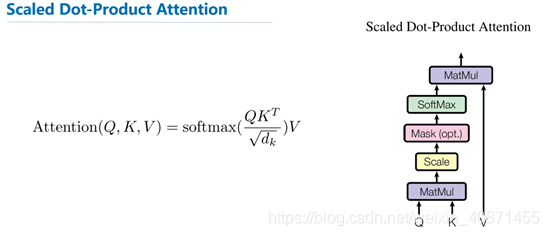 在介绍多头attention之前,我们先看一下论文中提到的放缩点积attention(scaled dot-Product attention)。对比attention的一般形式,scaled dot-Product attention就是我们常用的使用点积进行相似度计算的attention,只是多除了一个(为K的维度)起到调节作用,使得内积不至于太大