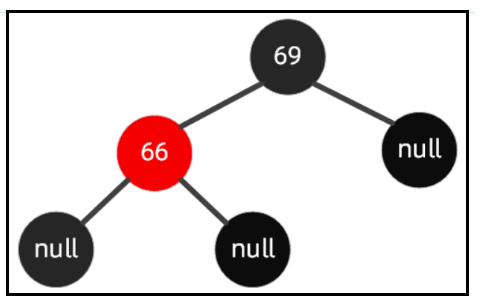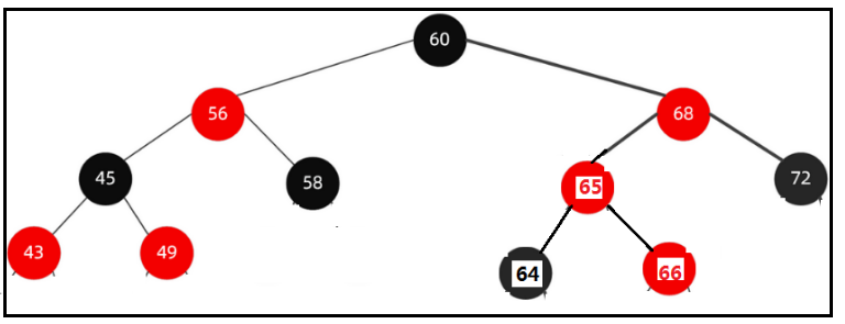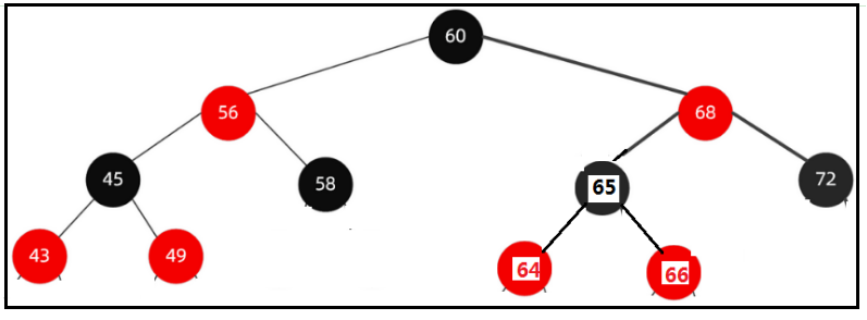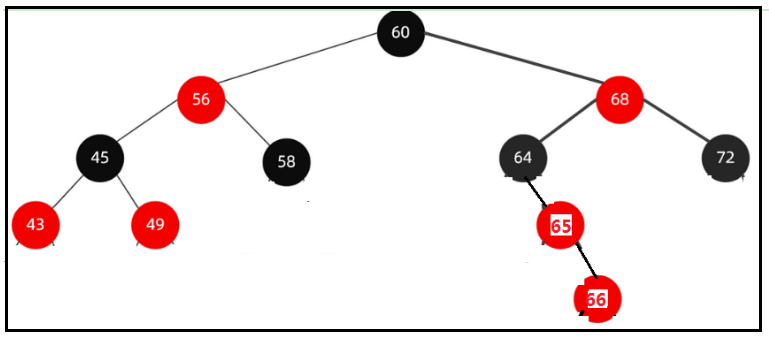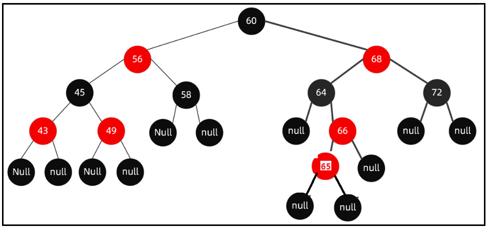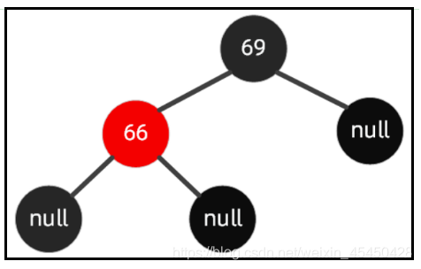 第二步:为了符合红黑树性质5进行变色(注:66为根节点必须为黑色)
