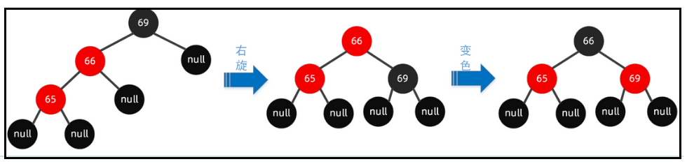 第二步:为了符合红黑树性质5进行变色(注:69为根节点必须为黑色)