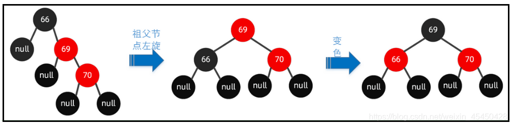 3. 右右节点旋转:以祖父节点【左旋】,搭配【变色】