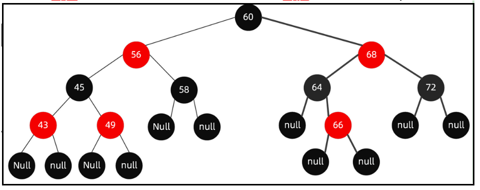 ②最长路径:根节点到叶子节点,红色节点和黑色节点数量相同,即最长路径,也就是黑色节点(或红色节点)* 2