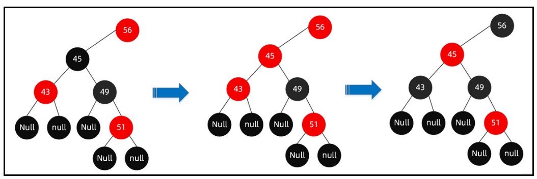 方式1:变色 红变黑 黑变红(不能连续出现两个相邻的红色节点,否则就要变色)