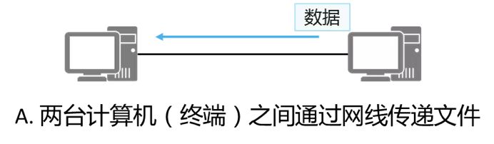 - 两台计算机(终端)之间通过网线传递文件