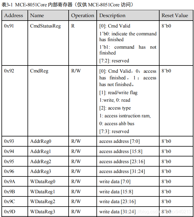 MCE-8051 可以利用扩展的 SFR(特殊功能寄存器),通过系统总线访问系统其它模块的寄存器。