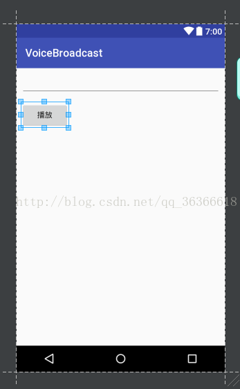 <android.support.constraint.ConstraintLayout xmlns:android="http://schemas.android.com/apk/res/android"xmlns:app="http://schemas.android.com/apk/res-auto"xmlns:tools="http://schemas.android.com/tools"android:layout_width="match_parent"android:layout_height="match_parent"tools:context="com.example.luuuzi01.voicebroadcast.MainActivity"><RelativeLayoutandroid:layout_width="368dp"android:layout_height="495dp"tools:layout_editor_absoluteY="8dp"tools:layout_editor_absoluteX="8dp"><EditTextandroid:id="@+id/et_voice_content"android:layout_width="368dp"android:layout_height="wrap_content"tools:layout_editor_absoluteY="0dp"tools:layout_editor_absoluteX="8dp"/><Buttonandroid:id="@+id/btn_play"android:layout_width="wrap_content"android:layout_height="wrap_content"android:text="播放"tools:layout_editor_absoluteY="0dp"tools:layout_editor_absoluteX="0dp"android:layout_marginTop="12dp"android:layout_below="@+id/et_voice_content"android:layout_alignParentLeft="true"android:layout_alignParentStart="true" /></RelativeLayout>