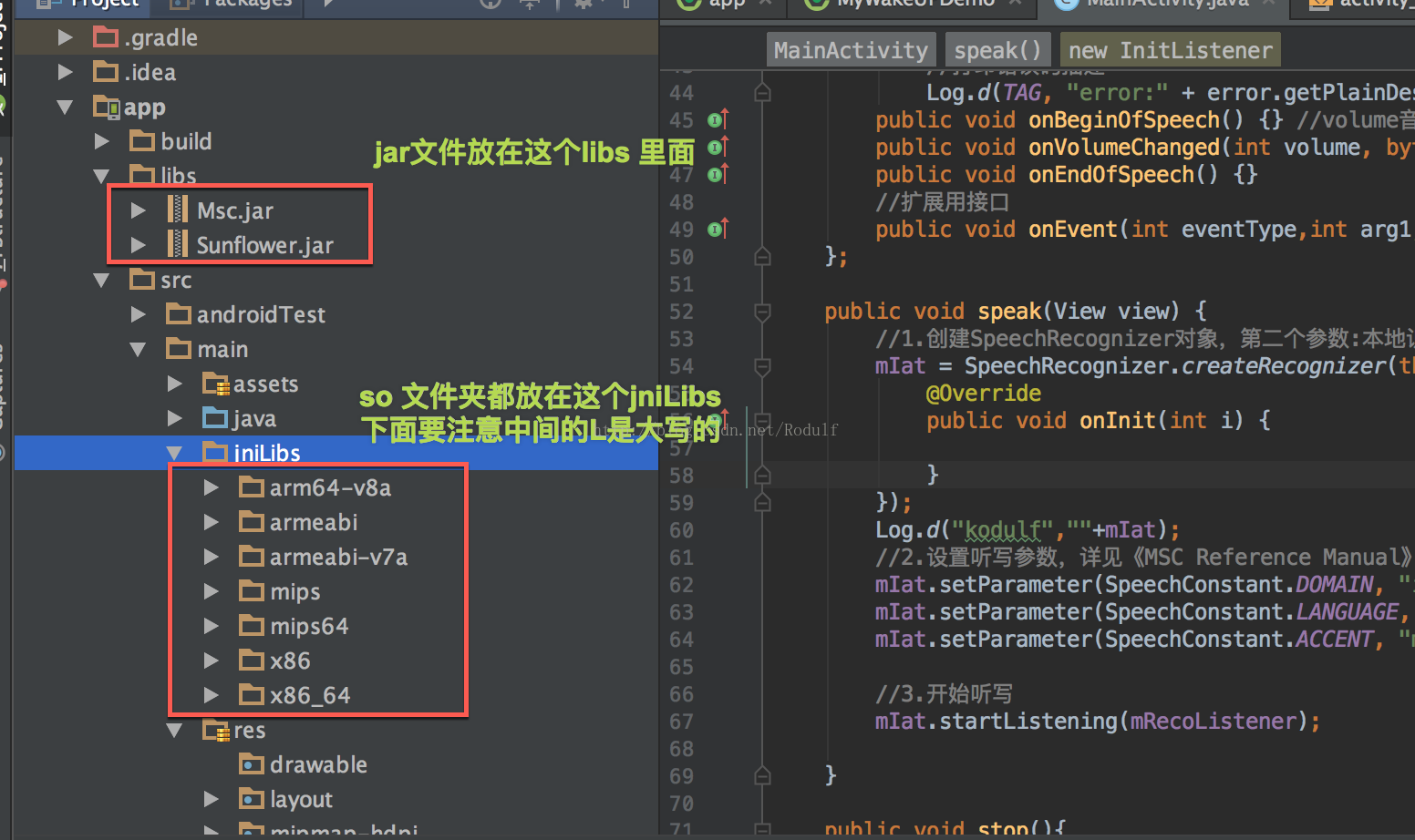 初始化即创建语音配置对象,只有初始化后才可以使用MSC的各项服务。建议将初始化放在程序入口处(如Application、Activity的onCreate方法),初始化代码如下: