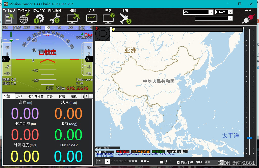 也就是这个软件 ,我们把usb连接飞控以及电脑,打开mp地面站,然后连接,
