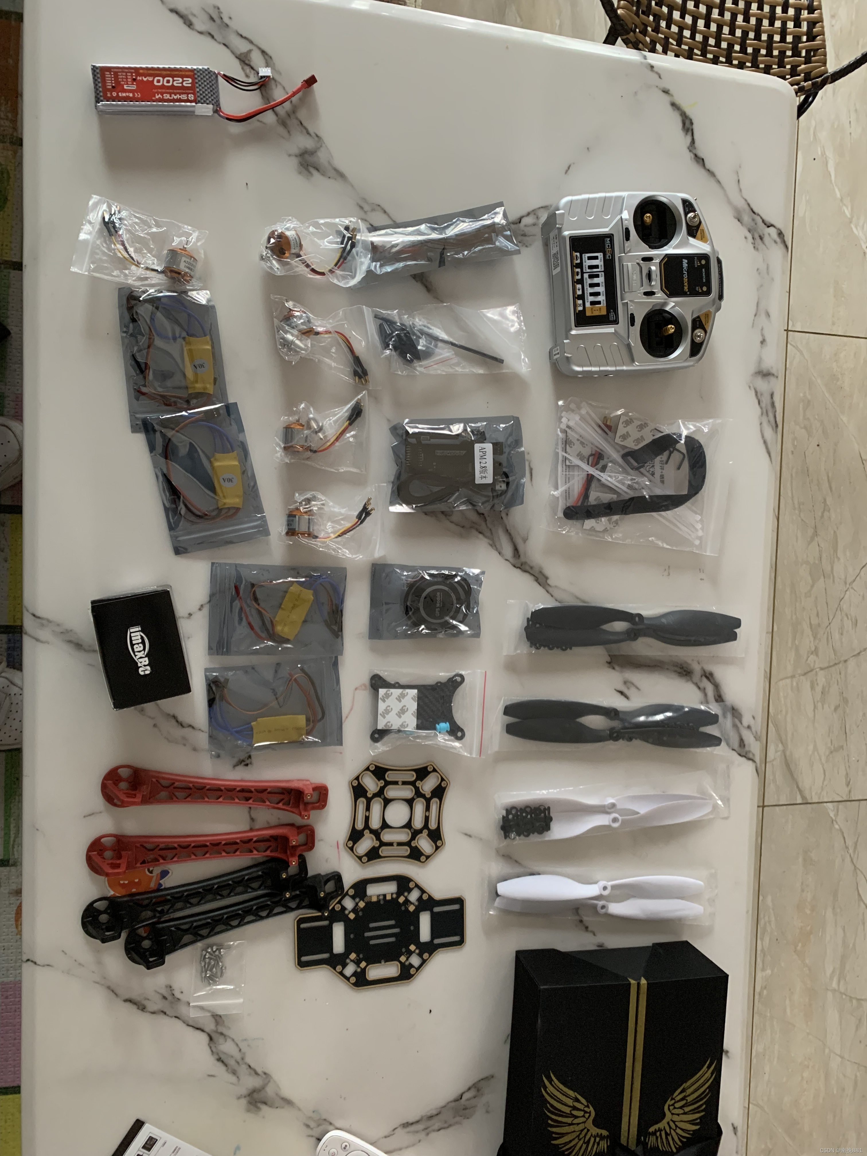 F450 是一款大量航模爱好者都很喜欢的一款无人机结构,很多想动手制作无人机的同学,都是从这一款机型开始的,当然我也是,在制作一款无人机,我们需要以下部件准备,