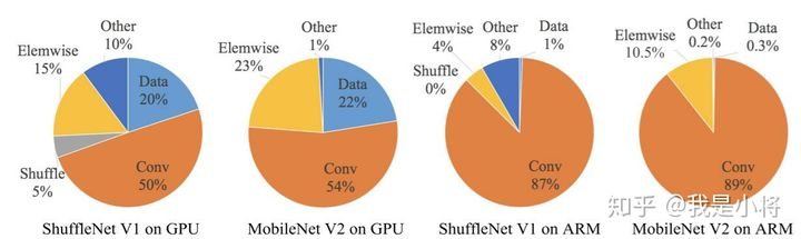 据此,作者在特定的平台下研究ShuffleNetv1和MobileNetv2的运行时间,并结合理论与实验得到了4条实用的指导原则: