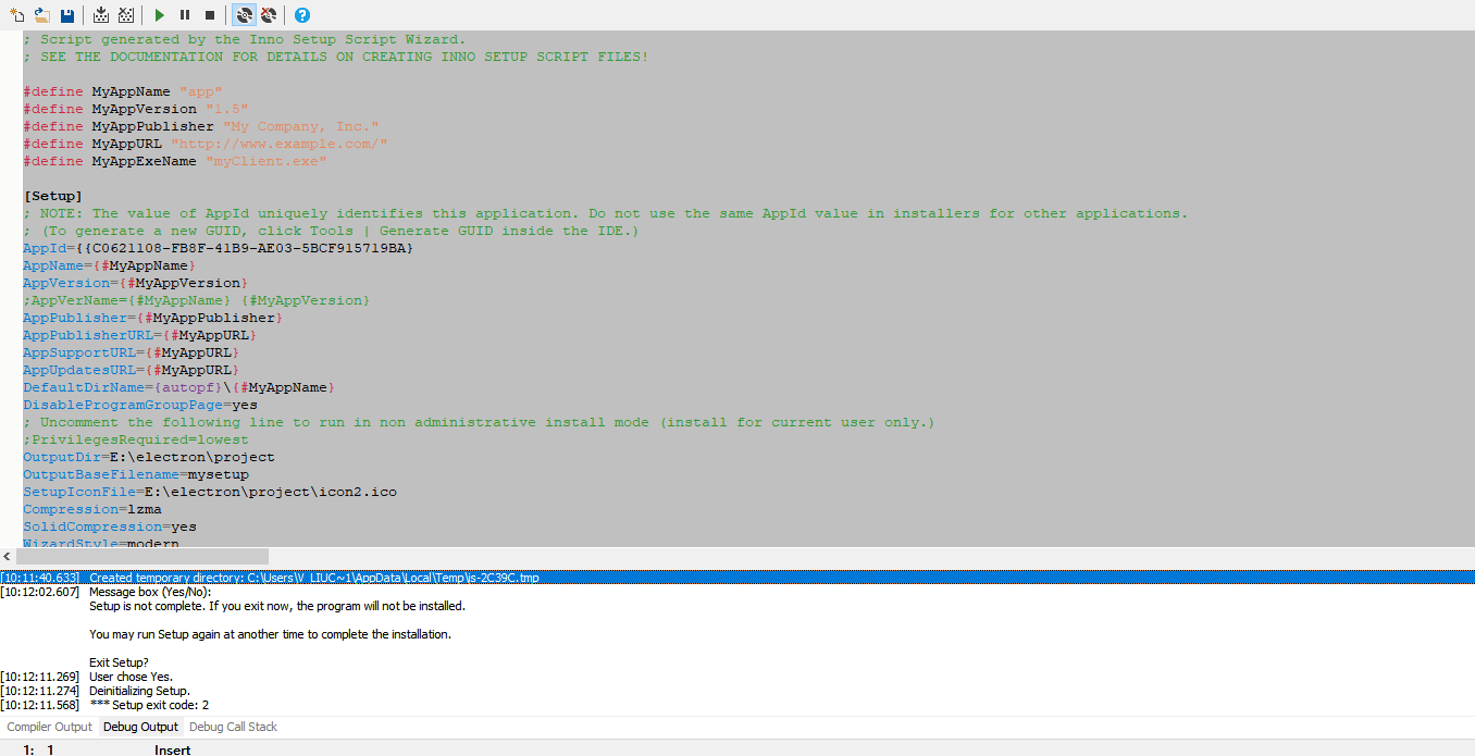 最近在学习electron开发桌面应用,当我们打包后生成exe文件会包含这很多依赖文件和资源文件,如果需要复制安装是不简便的,作为客户端应用程序,使用者更希望能直接得到一个安装包,安装之后通过桌面快捷方式的形式去访问,所以就学习了一下如何使用Inno打包成一个安装包。
