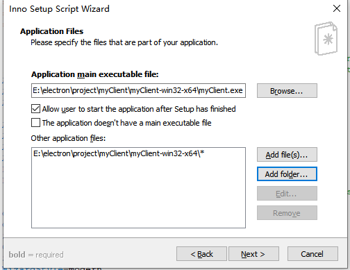 Add folders(添加应用程序文件,即exe应用程序所有所需文件包含目录)