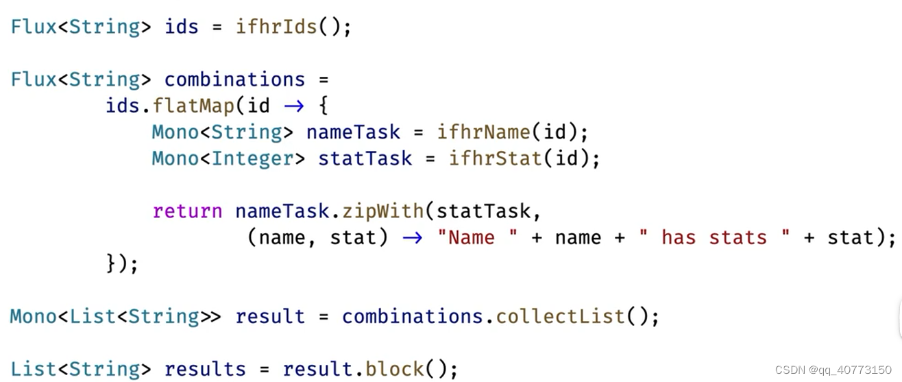 - 代码中对Flux.interval()方法生成的流,采用了take()操作来制定获取的元素,若不采用,那么该流是一个无限序列。